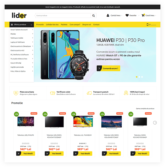 Te bucuri de un magazin cu sute de functionalități ușor de administrat, optimizat SEO și pregatit pentru vânzări online.
