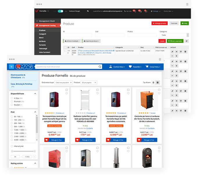 Magazinele online dezvoltate de ContentSpeed au o interfață modernă și intuitivă, ușor de înțeles pentru clienții care cumpără online, dar și simplu de adaptat la cerințele oricărei afaceri de e-Commerce.