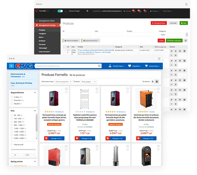 Magazinele online dezvoltate de ContentSpeed au o interfață modernă și intuitivă, ușor de înțeles pentru clienții care cumpără online, dar și simplu de adaptat la cerințele oricărei afaceri de e-Commerce.