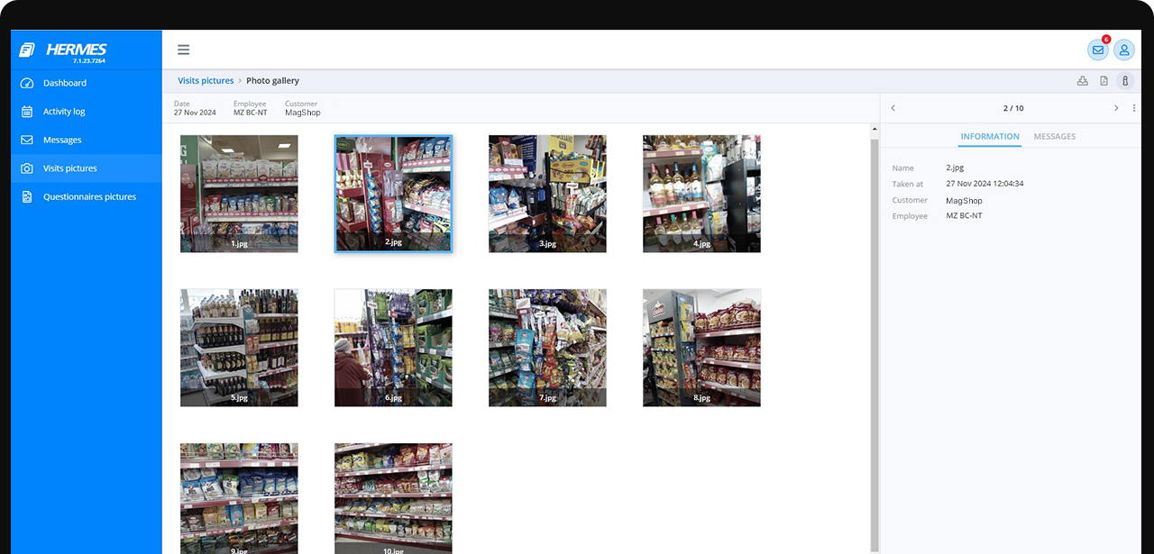 Colectează date de la raft în numai câteva secunde, ceea ce înseamnă că reprezentanții de teren câștigă timp pe care îl pot folosi să crească numărul de vizite zilnice. HERMES AI Shelf Recognition ajută la colectare de KPI în mod obiectiv și exact, ceea ce permite acțiuni imediate în magazin pentru a optimiza execuția la raft, a spori vânzările și atinge standarde de tip Perfect Store – toate acestea reducând costurile de merchandising și audit.