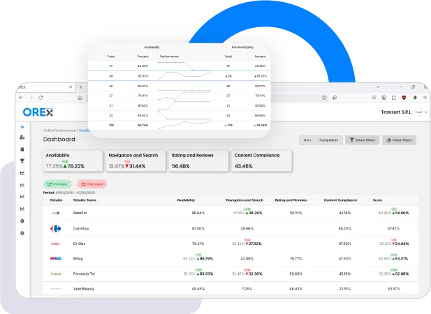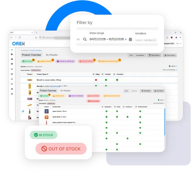 Lipsa stocului este cauza principală a pierderii vânzărilor. OREx te ajută să identifici zilnic problemele de aprovizionare și să îți optimizezi distribuția către magazinele online pentru a reduce la minimum situațiile de produs epuizat (OOS).