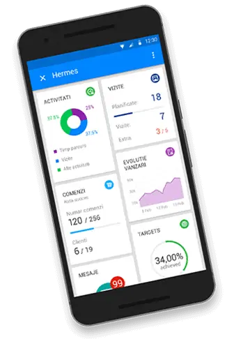 HERMES este soluția mobilă de vânzări Pre-Sales și Van-Sales dezvoltată special pentru a crește productivitatea agenților din teren. Componenta mobilă este disponibilă în variantă completă pe platforma Android, iar componenta de BackOffice (Administrare și Raportare) pe sistem de operare Windows.