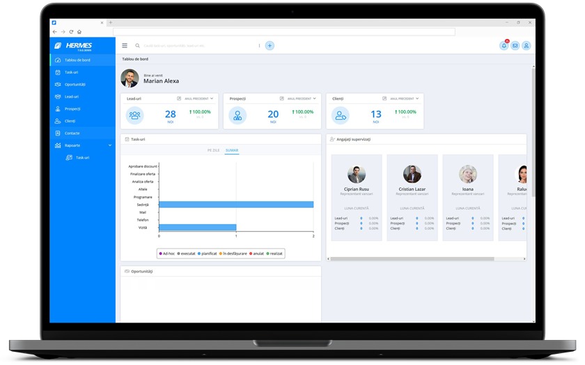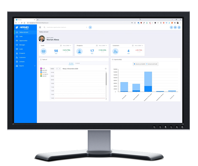 Aplicația HERMES CRM pentru echipele de vânzări are o interfață ușor de folosit pentru a oferi utilizatorilor o experiență cât mai bună de utilizare în activitatea lor de zi cu zi.