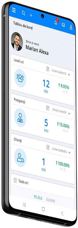 Apoi vor primi remindere automate direct din aplicație pentru a realiza la timpul potrivit toate activitățile programate pentru a crește semnificativ șansele de a vinde, începând de la contactul inițial cu un potențial client până la finalizarea vânzării.