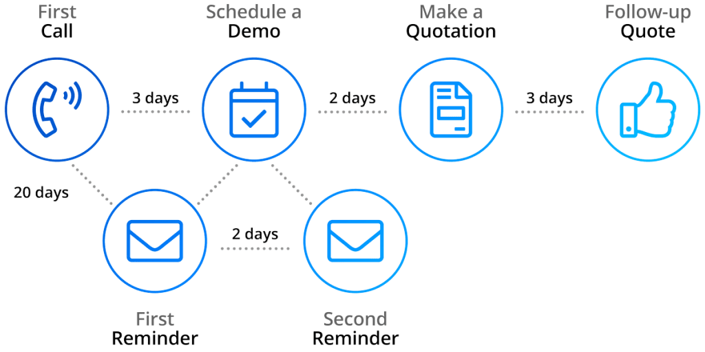 Salvează ore bune de lucru în fiecare săptămână prin automatizări utile pentru întreaga ta echipă de vânzări.  Așa că timpul câștigat îl poți folosi pentru a îmbunătăți relația cu clienții, pentru a prezenta produse noi sau pentru a vinde mai mult.