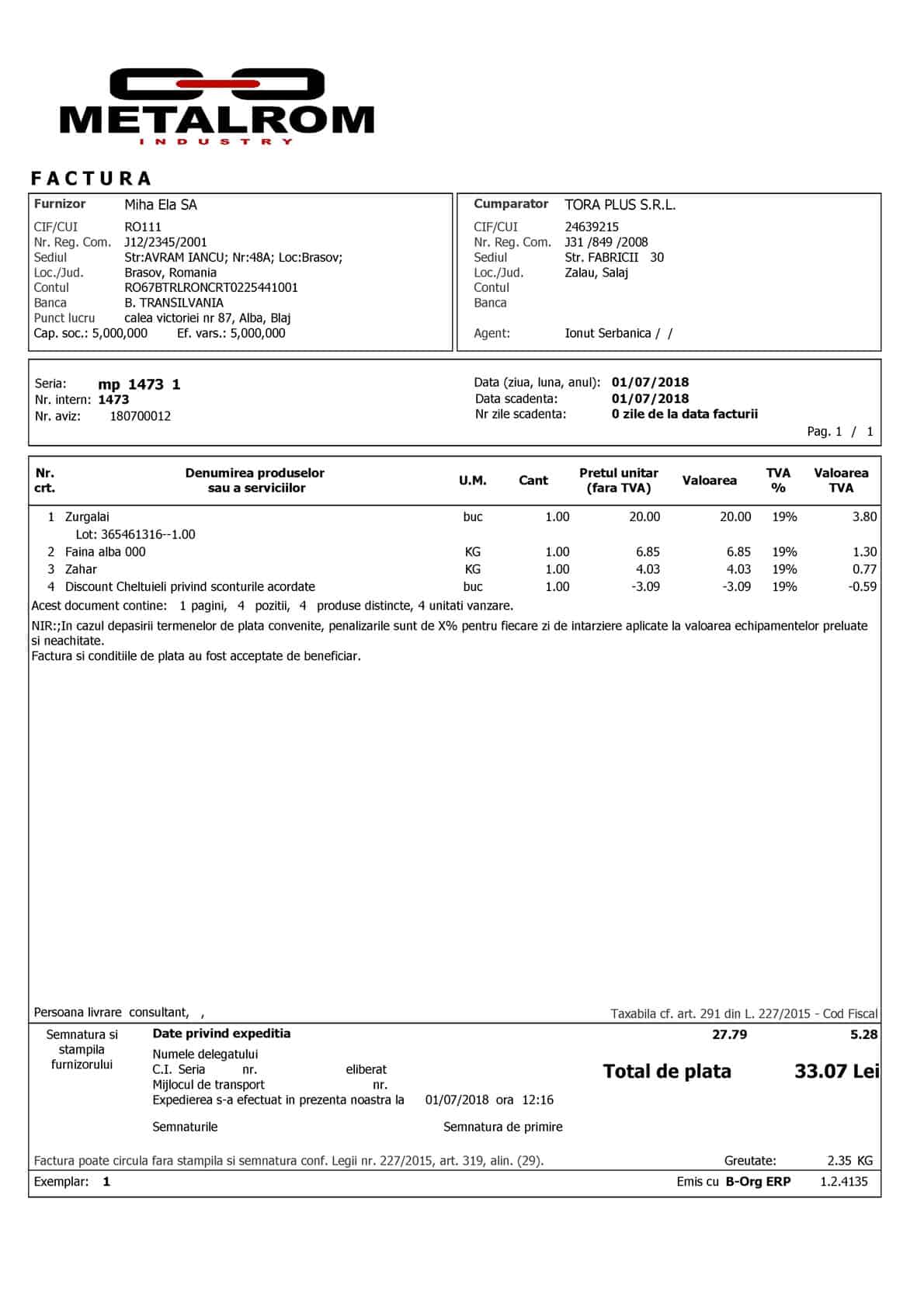 În plus, ai și avizele de însoțire a mărfii și facturile de garanție pentru ambalajele aflate în custodie la clienți.
